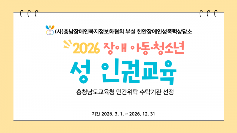 2026 장애 아동·청소년 성 인권교육 민간위탁 수탁기관에 선정되었습니다.